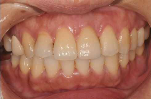 图7 图3所示的同一位活动假牙患者,改做种植牙以后